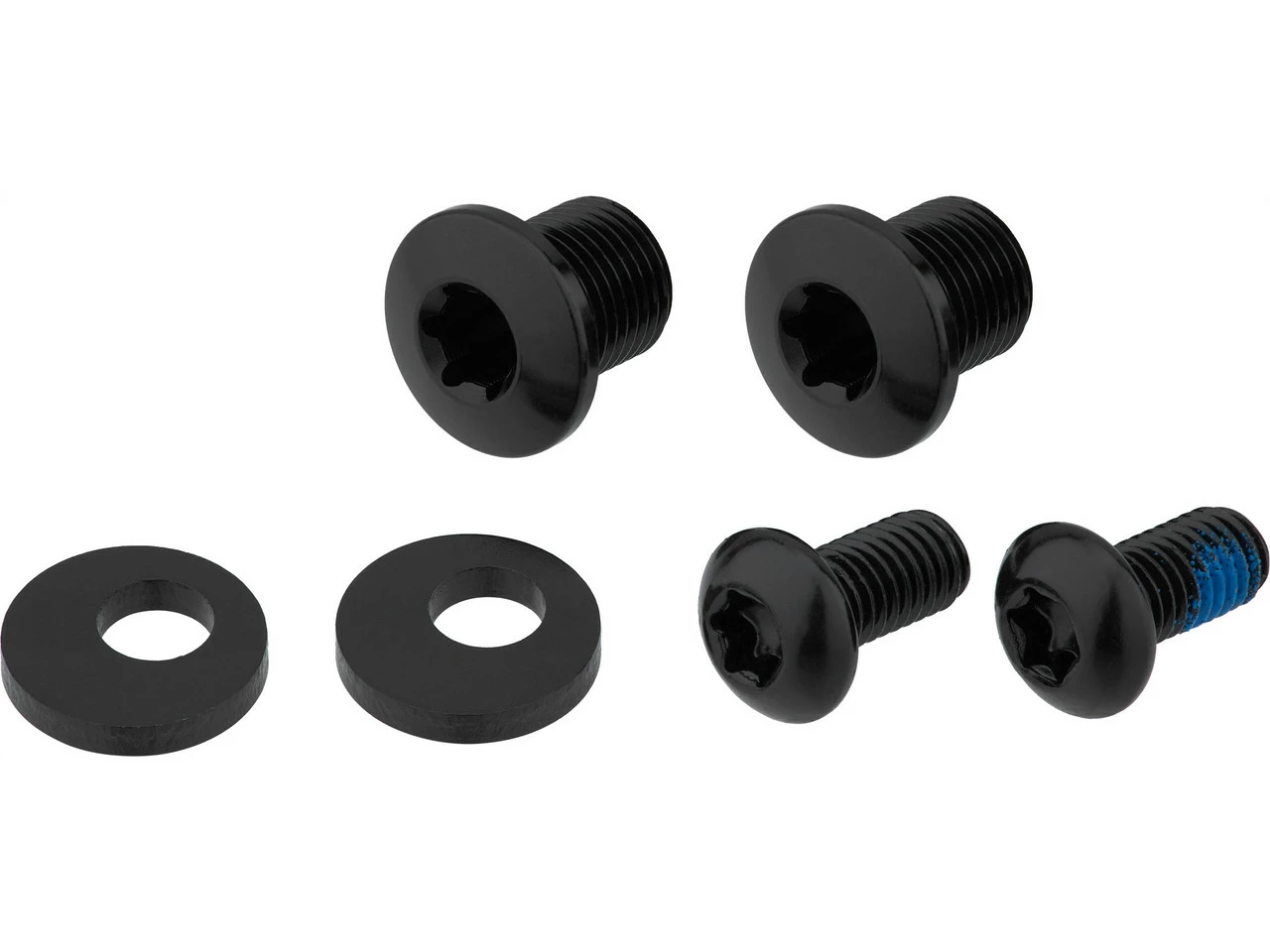 Ce set de vis de plateaux convient uniquement pour la version à 30 dents du plateau unique ovale VTT avec un diamètre de cercle de trous de 104 mm et quatre bras d’absoluteBLACK. Il se compose de deux vis M8 en aluminium pour Torx T30, de deux vis M5 en acier pour Torx T25 et de deux entretoises. Ce kit est contenu dans la livrason du pédalier de 30 dents susmentionné. Commande-le ici si tu as besoin d’un remplacement.