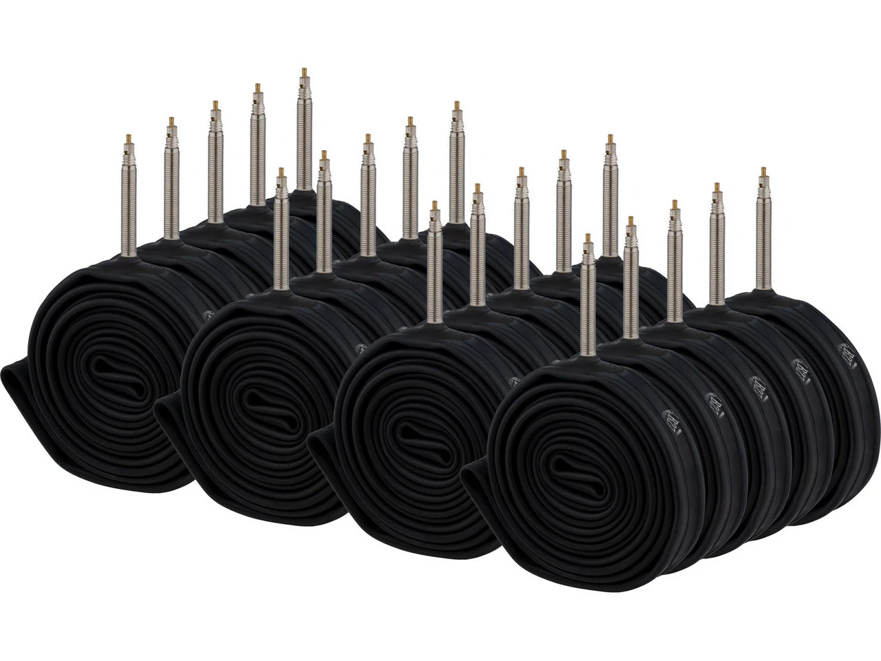 Désignation/synonymes : valve Sclaverand (SV), valve française, valve PrestaDiamètre extérieur : 6,5 mmAutres : la valve est dévissable sur toutes les chambres à air Continental avec valve SV (pour permettre l’utilisation d’un prolongateur de valve ou le remplissage avec un liquide anticrevaison, etc.).Contenu :20 x chambres à air Continental Race 28 emballage d’atelier