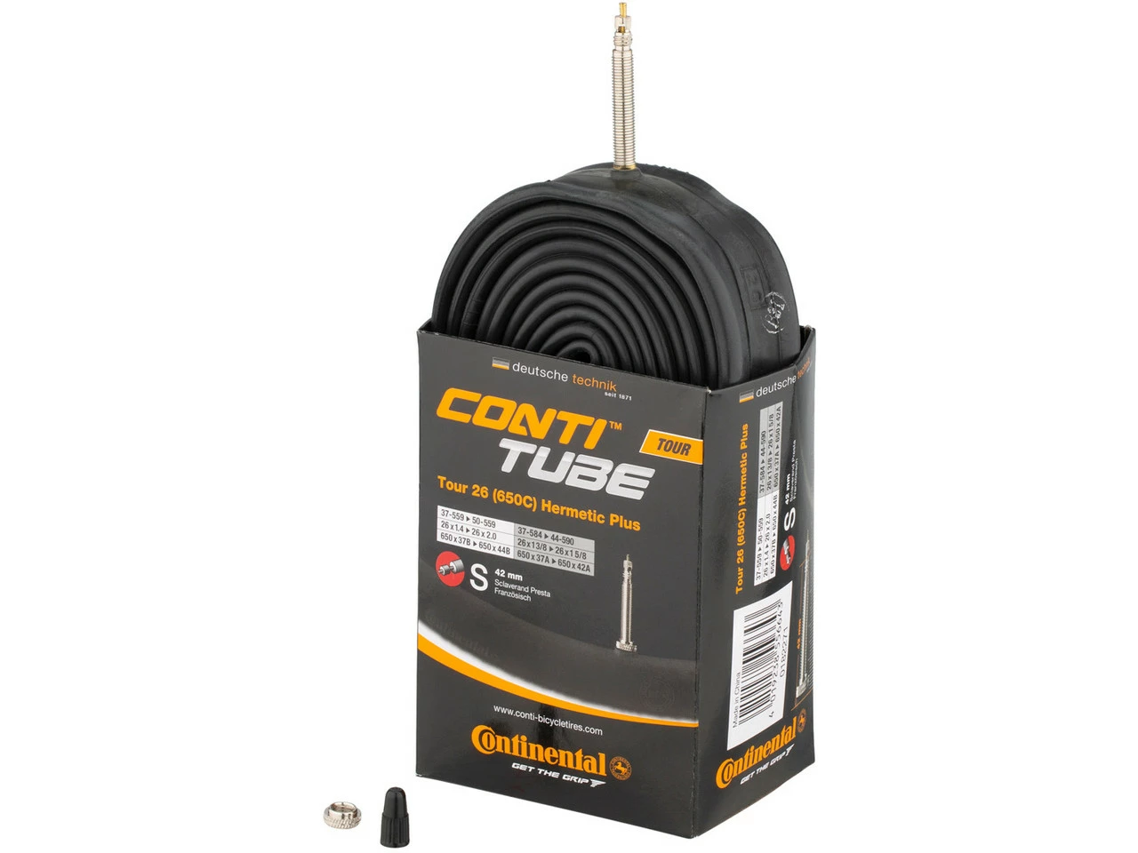 Désignation/Synonymes : valve Dunlop (DV), valve normale (NV)Diamètre extérieur : 8,5 mmContenu :1 x chambre à air Continental Tour 26 Hermetic Plus