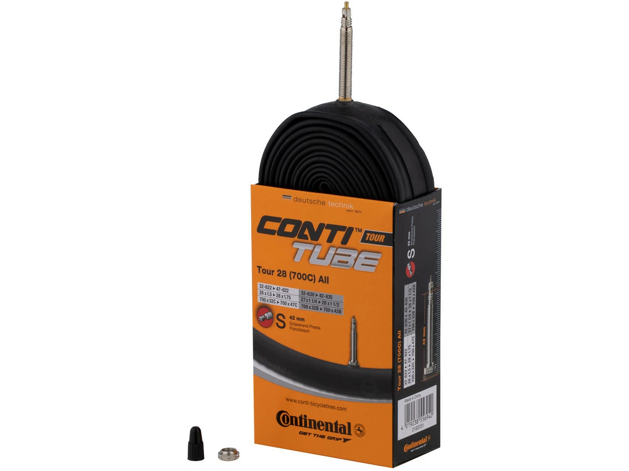 Désignation/Synonymes : valve Dunlop (DV), valve normale (NV)Diamètre extérieur : 8,5 mmContenu :1 x chambre à air Continental Tour 28 All