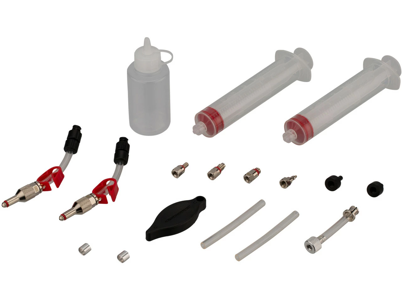 2 x seringues Jagwire2 x adaptateurs universels Jagwire avec vanne d’arrêt1 x récipient collecteur2 x tuyaux de purge5 x adaptateurs de raccord1 x boîte de rangement en matériau synthétique (transparent)