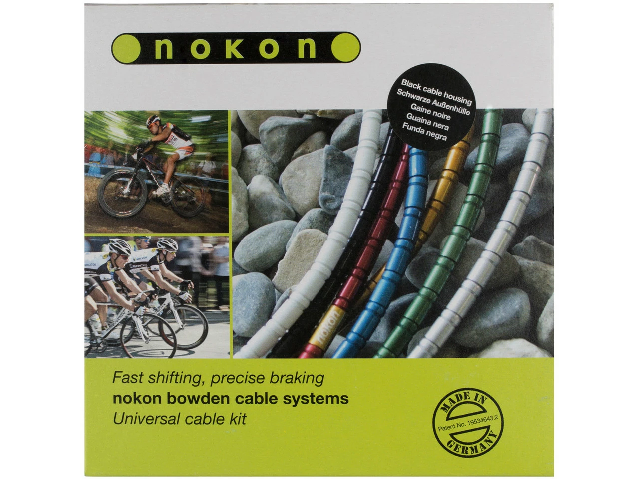 Remarque :Pour un équipement complet de ton vélo avec freins et vitesses Nokon 2 sets sont nécessaires et selon la longueur et le type d’installation, également d’autres éléments d’extension.Contenu :2 x câbles de base Nokon (avec maillons Konkavex 41 cm sur 200 cm de liner de câble de frein 1,6 mm)80 x maillons Konkavex simples (longueur de 7,5 mm par maillon)10 x embouts5 x perles2 x bobines de vitesses route2 x câbles de vitesses en acier inoxydable2 x câbles de frein en acier inoxydable2 x viroles pour câble2 x raccords pour liner Nokon