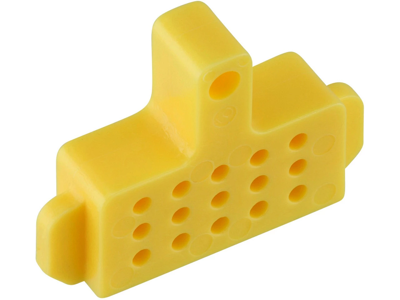L’entretoise de purge à 15 trous Shimano (jaune) est compatible avec les étriers de frein à 2 pistons des séries XTR, XT, SLX et Alfine.