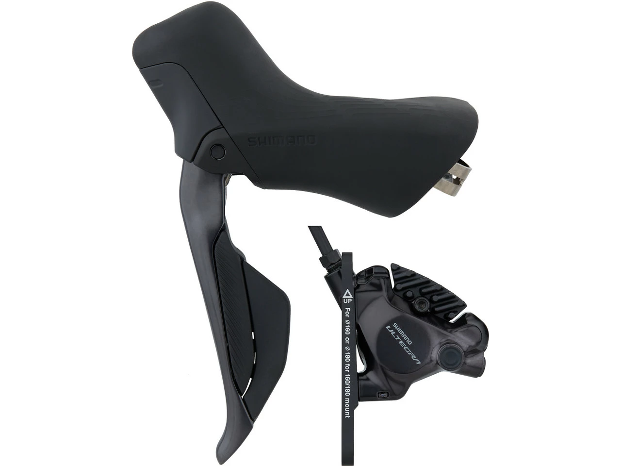 Le frein à disque pour le groupe de vélo de route Ultegra de Shimano se compose d’un BR-R8170 et d’un ST-R8170. Il s’agit d’un étrier de frein Falt-Mount pour l’avant ou l’arrière et d’un levier de changement de vitesse / de frein électronique qui permet la commutation de 2 ou 12 vitesses sans fil et un freinage hydraulique.