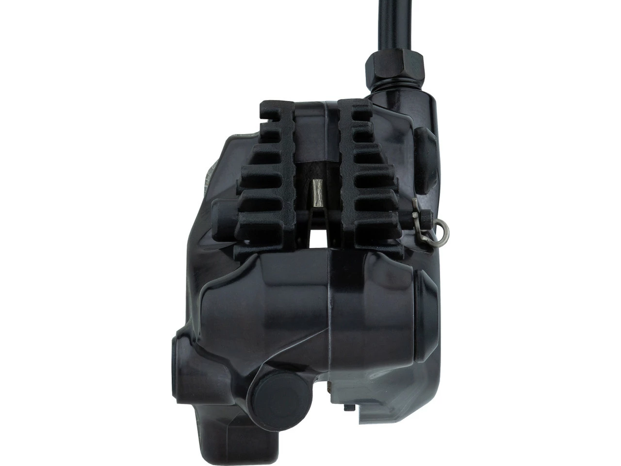 Le frein à disque est livré avec une conduite de frein et des plaquettes en résine Ice-Tech, qui permettent une dissipation de la chaleur particulièrement efficace grâce à leurs ailettes de refroidissement. Mais tu peux aussi l’utiliser avec des plaquettes conventionnelles.
