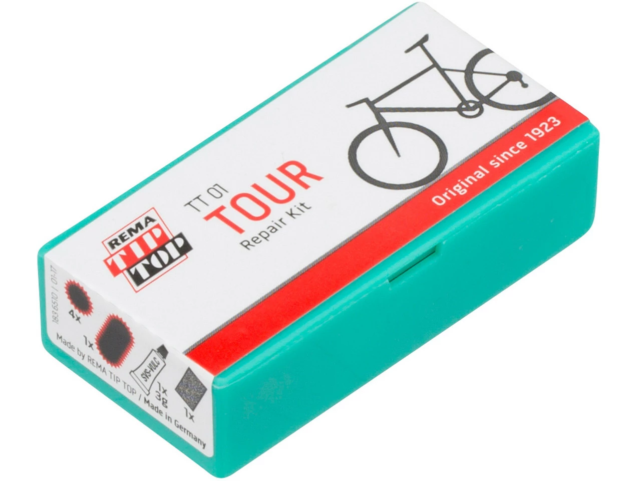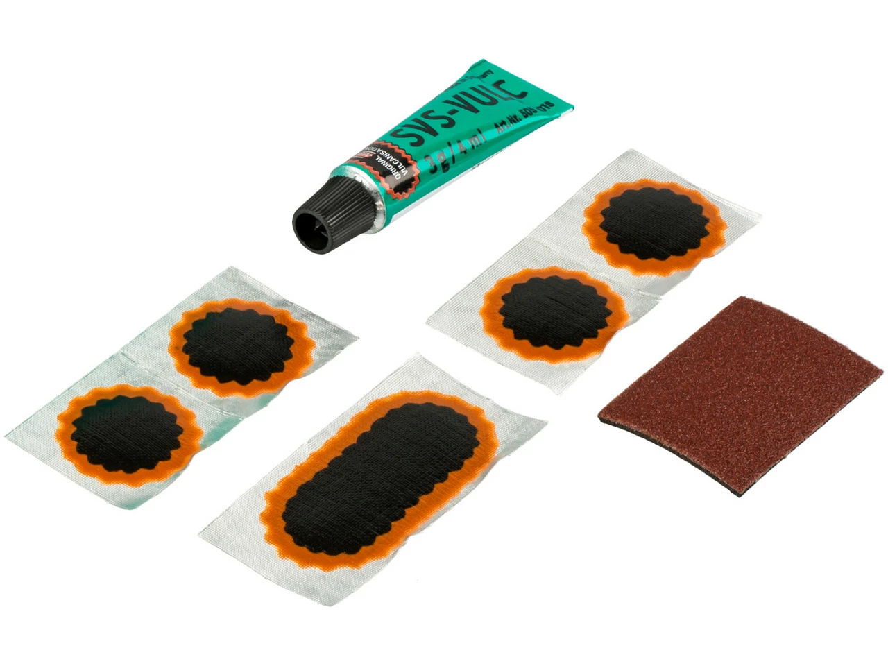 Contenu :4 x rustines Tip Top taille F1 (ø 25 mm)1 x rustines Tip Top taille F2 (50 x 25 mm)1 x tube de liquide SVS de 3 g1 x papier émeri