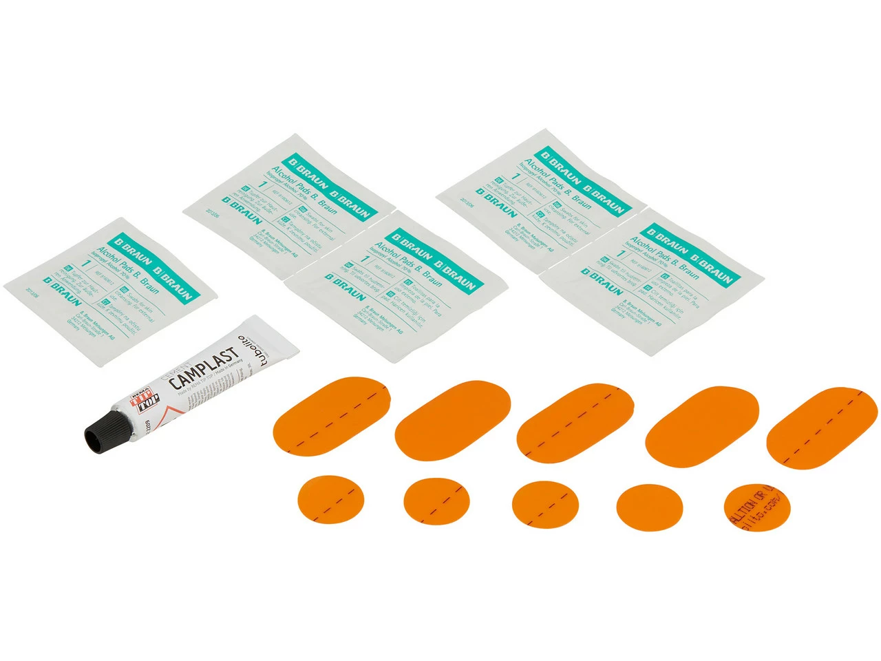 Numéro du fabricant :Set:33080002Contenu :5 x rustine tubolito grande5 x rustines tubolito petites5 x chiffons de nettoyage B. Braun1 x adhésif Tip Top Camplast Cement