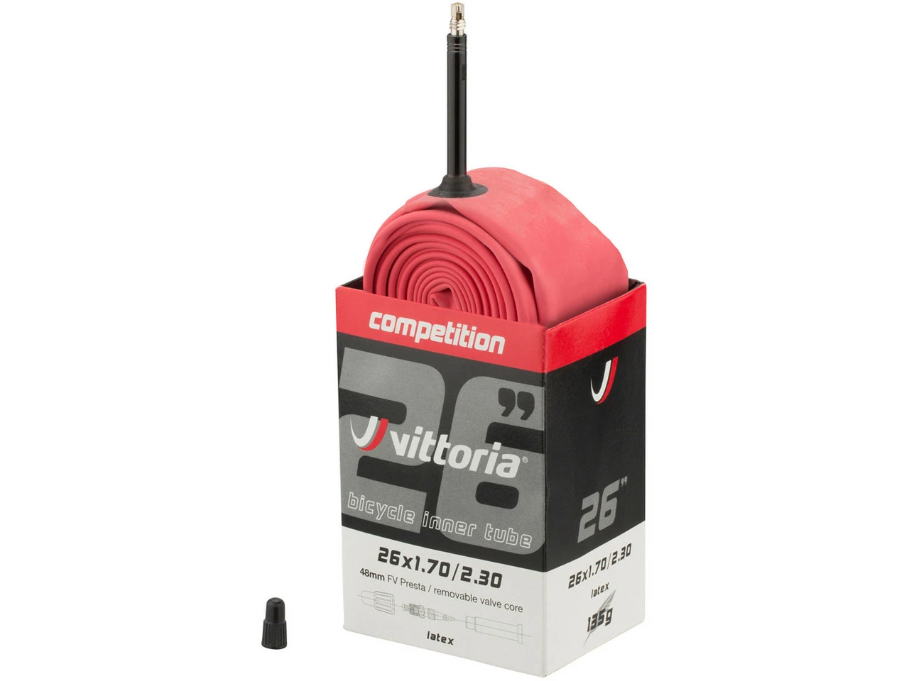 Spécifications :Utilisation :All Mountain, Downhill, Enduro, Cross CountryETRTO:47-559 à 60-559Dimensions du pneu:26″ x 1,7″ à 26″ x 2,3″Matériau du tube:LatexType de valve:SV 48 mmVersions :26 x 1,7-2,3 SV 48 mm