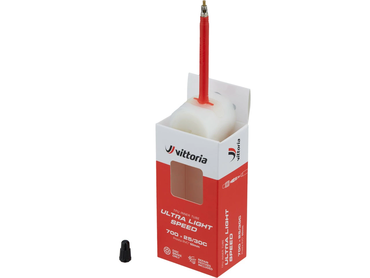 Caractéristiques :chambre à air légère en TPU pour les vélos de routepetit format70 % plus léger et 14 % plus rapide qu’une chambre à air en butyle standardvalve avec obus de valve interchangeablematériau du la chambre à air recyclable à 100 % (pas la valve)Versions :25-30 x 622 SV 60 mm